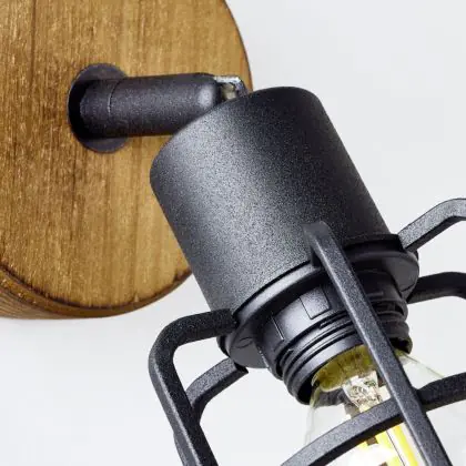 Brilliant Gwen Wandleuchte Metall Holz Schwarz | Geeignet für 1x E14