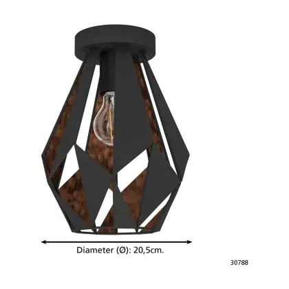 Eglo Deckenleuchte Carlton 1 Stahl Schwarz Bernstein | IP20 - Geeignet für 1x E27