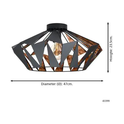Eglo Deckenleuchte Carlton 6 Stahl Schwarz Bernstein | IP20 - Geeignet für 1x E27