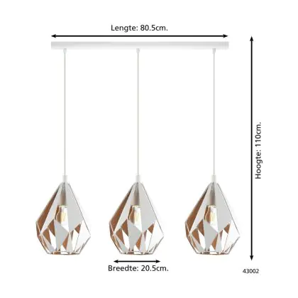 Eglo Pendelleuchte Carlton 1 Stahl Weiß Gold | IP20 - Geeignet für 3x E27