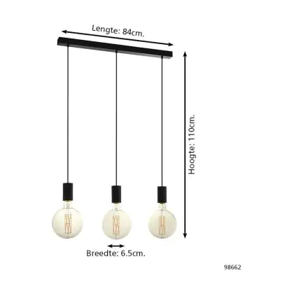 Eglo Pendelleuchte Pozueta Stahl Schwarz | IP20 - Geeignet für 3x E27