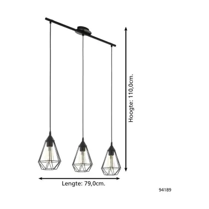 Eglo Pendelleuchte Tarbes Stahl Schwarz | IP20 - Geeignet für 3x E27