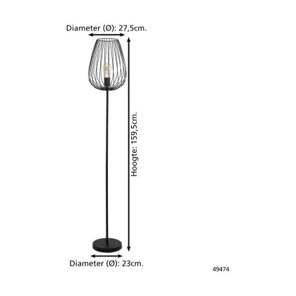 Eglo Stehlampe Newtown Stahl Schwarz | IP20 - Geeignet für 1x E27