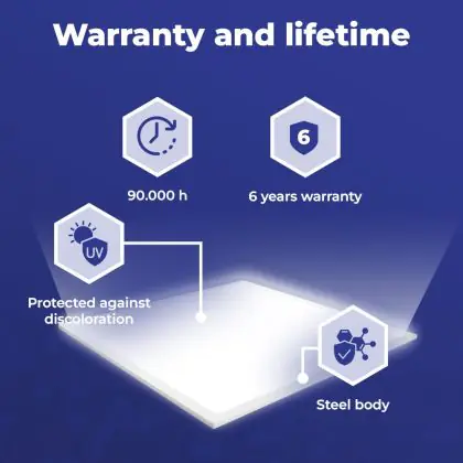 | Herstellername | Budgetlight LED Panel Delta Value V5.1 28W 3920lm 2CCT 600*600 UGR<19 Backlit - DALI dim | |