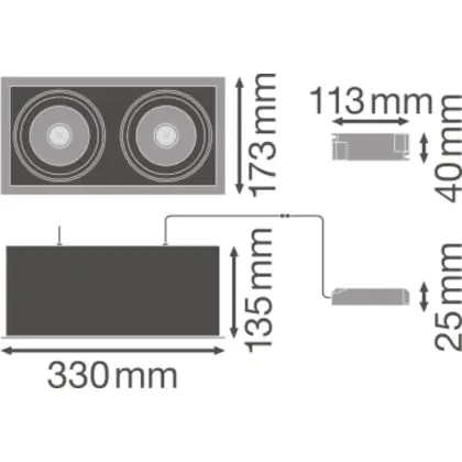 Ledvance LED-Spot Quadrat Multi schwenkbar Schwarz-Weiß 2x30W 5400lm 38D - 830 | Ausschnitt 320x160mm