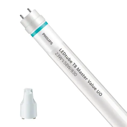 Bei der Philips LED Röhre 150cm | 3000K 23W - Master Value UO handelt es sich um eine energieeffiziente LED-Röhre. Sie ersetzt Ihre konventionelle Leuchtstoffröhre mit 58W. Die Röhre ist 1500 mm lang und hat die Farbtemperatur 3000K - Warmweiss. Die durchschnittliche Lebensdauer der LED-Röhre beläuft sich auf 60000 Stunden. Wir bieten Ihnen für dieses Produkt eine Garantie von 5 Jahre an.