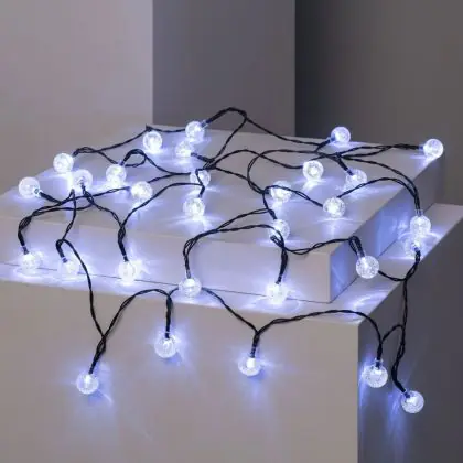 Bright Choice Guirlande lumineuse LED Moonballs ABS 1W 20lm - 850 Blanc Froid | IP65 - Solar