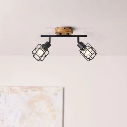 Brilliant Gwen Plafonnier Métal Bois Noir | Convient pour 2x E14
