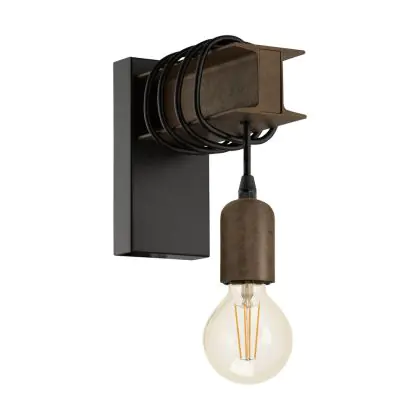Eglo Applique Murale Townshend 4 Échantillon Noir Brun | IP20 - Convient pour 1x E27