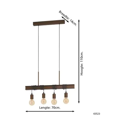 Eglo Suspension Luminaire Townshend 4 Échantillon Brun | IP20 - Convient pour 4x E27