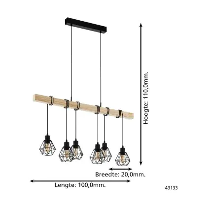 Eglo Suspension Luminaire Townshend 5 Échantillon Bois Noir | IP20 - Convient pour 6x E27