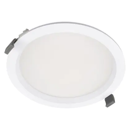 Les spots LED encastrables (aussi appelés Downlights) sont des solution éco-énergétiques permettant de remplacer les spots classiques équipés de technologie à fluorescence. Ce downlight Ledvance Spot Encastrable LED Comfort Opale Blanc 30W/25W/20W 3600lm/3000lm/2400lm 100D - 930-940 CCT | Diamètre 200mm - IP44 - Meilleur Rendu De Couleur - Dali Dimmable est conçu pour remplacer un spot classique de 2x26. La consommation de ce downlight LED est considérablement plus faible qu’un luminaire classique, à savoir, seulement 30 watts. Une économie d’énergie sans compromettre la qualité de la lumière. Le flux lumineux est de 3600 lumens. La lumière de ce downlight LED est diffusé à 100 degrés et offre un bon rendu des couleurs. La durée de vie moyenne de ce luminaire LED est de 100000 heures.