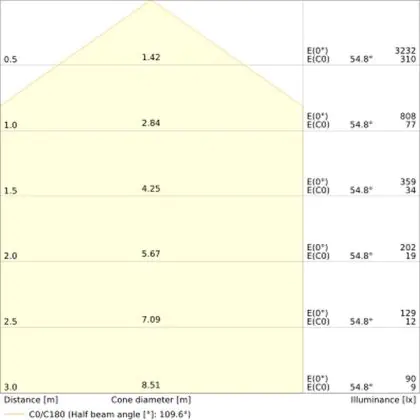 - Angle de diffusion: 110 °