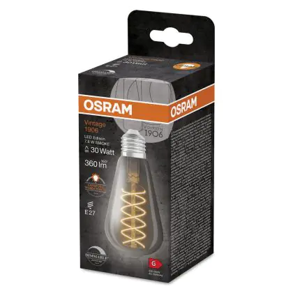 Cette ampoule Ledvance Vintage 1906 LED E27 Edison Smoke 7.8W 360lm - 818 | Dimmable - Remplacement 30W avec son efficacité lumineuse de lumen par watt vous permettra de profiter d’un éclairage de qualité. Avec sa durée de vie de 15000 heures, vous n’aurez pas à vous soucier de son remplacement avant quelques années.