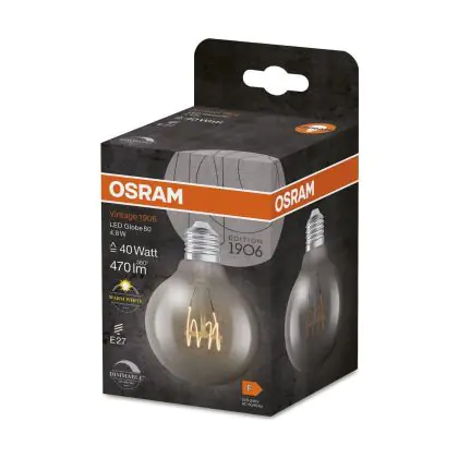 Cette ampoule Osram Vintage 1906 LED E27 Globe Filament Claire 4.8W 470lm - 827 | Dimmable - Remplacement 40W avec son efficacité lumineuse de lumen par watt vous permettra de profiter d’un éclairage de qualité. Avec sa durée de vie de 15000 heures, vous n’aurez pas à vous soucier de son remplacement avant quelques années.