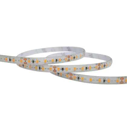 Ce chiffre indique le nombre de points d'éclairage LED par mètre sur le ruban. La règle est la suivante : plus il y a de LED par mètre, plus la lumière/le rendement lumineux est puissant.